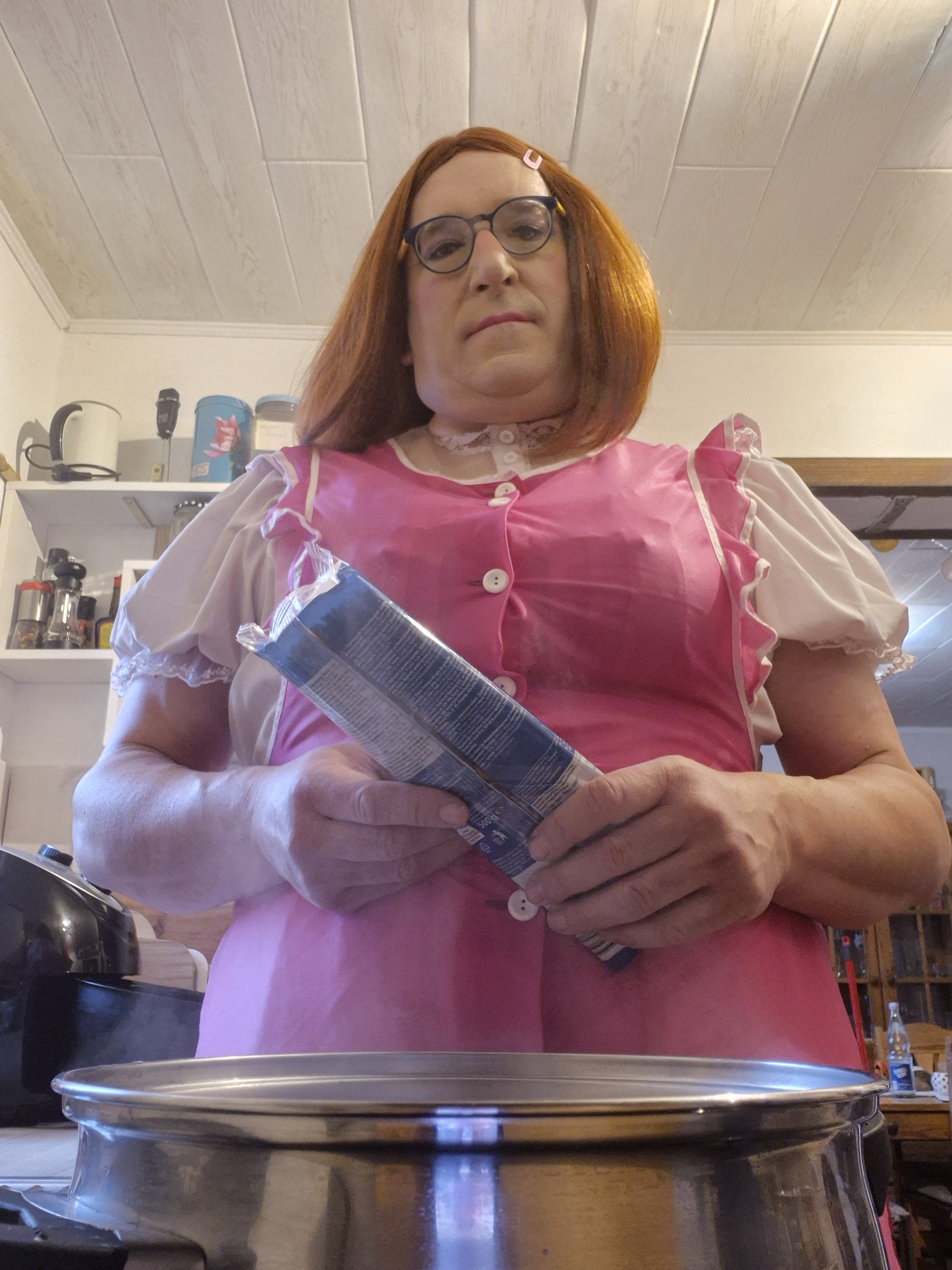Auch bei der Wäsche teilen wir uns die Aufgaben. Meine Herrin wäscht und hängt die Wäsche auf, während ich das Bügeln übernehme und die Wäsche danach zusammenlege. Wie beim Putzen, übernehme ich auch die anderen Aufgaben, wenn meine Frau verhindert ist und kümmere mich vor allen Dingen eigenständig um meine Sissy Bekleidung, damit diese immer hübsch aussieht und ich meiner Herrin damit eine Freude machen kann. Sofern es die Umstände erlauben, mache ich mich für die Hausarbeit sehr gern vollständig zurecht und trage neben einer angemessenen, mädchenhaften Kleidung auch ein dezentes Make-Up sowie eine Perücke und Silikoneinlagen, die mir weiblichere Formen verleihen.