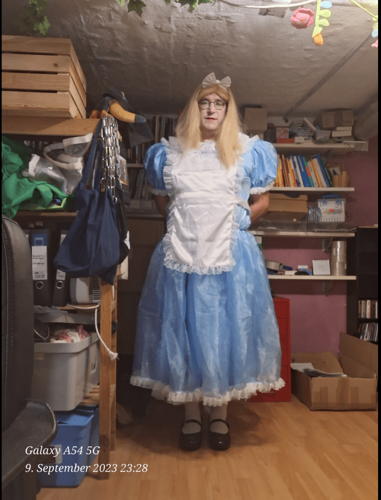 Bei der Oberbekleidung wird es schwieriger, weil meine Herrin keine festen Regeln aufgestellt hat. Es gibt ein paar Kleider, die sie sehr an mir mag, lässt mich aber selbst entscheiden, was ich für sie anziehe. Mal ist es ein langes Lackkleid, mal ist es mein Alice-im-Wunderland-Kleid, mal ein klassisches Dienstmädchenoutfit oder ein Skaterrock mit einer schlichten Bluse. Du findest zahlreiche Bilder in der Galerie, auf denen ich in verschiedenen Outfits zu sehen bin.