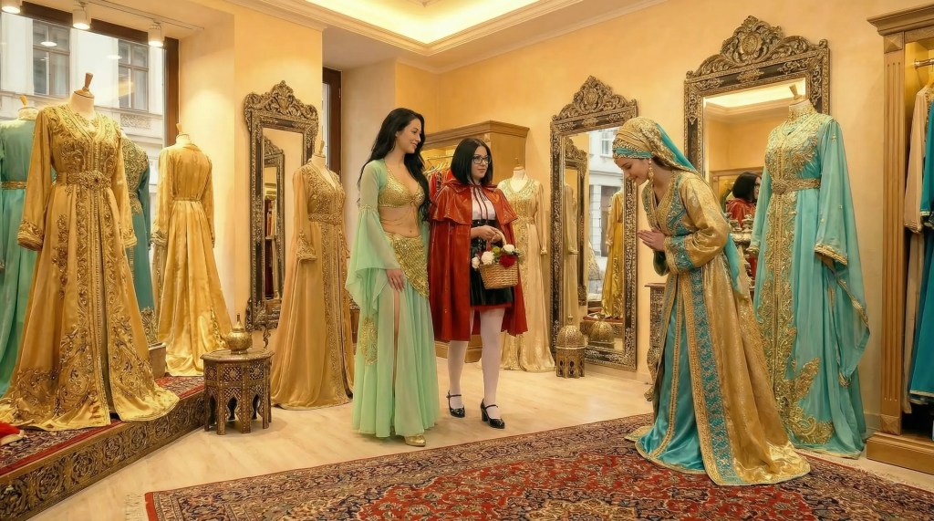 Sayyadah führte das Rotkäppchen zu einem orientalischen Bekleidungsgeschäft.