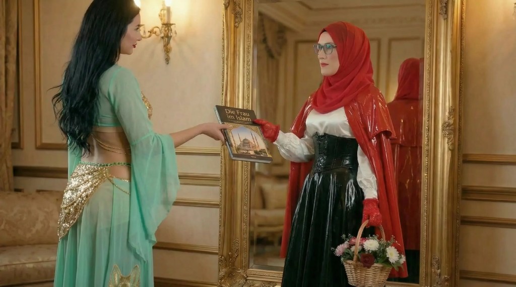 Rotkäppchen war wie verzaubert von dieser neuen Welt und probierte Kleider an, die ihr gefielen, die Sayyadah für sie ausgesucht hatte. Sie ließ sich einen Hijab anlegen und betrachtete sich im Spiegel … sie würde eine Muslima-Sissy werden … aber war das so unvorstellbar ?