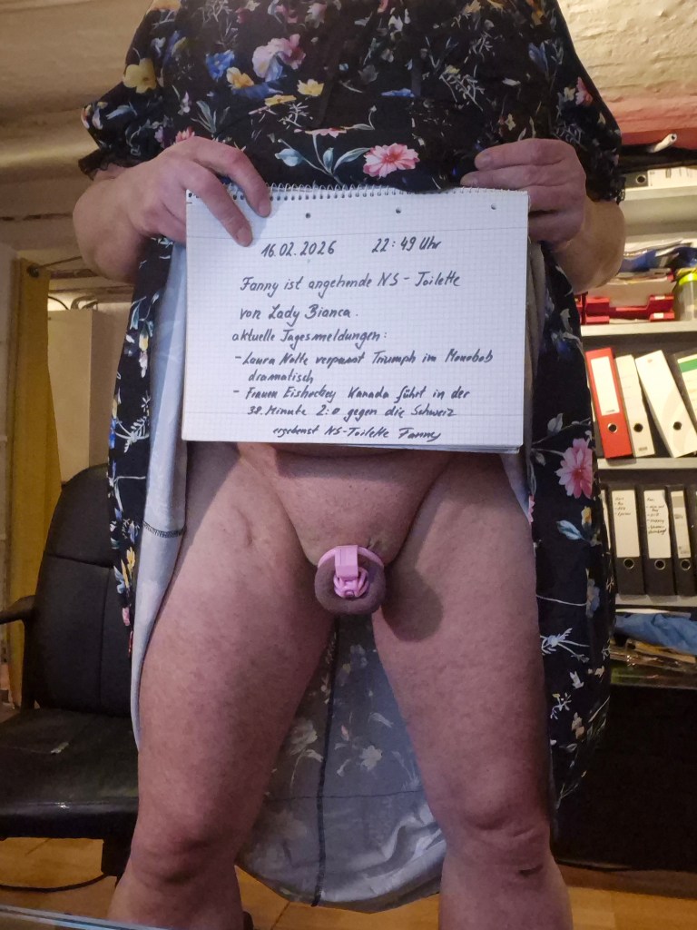 Ich erhielt heute eine neue Aufgabe von Lady Bianca (@Lebenspaar). Zunächst erhielt ich die Erlaubnis, dass ich Lady Bianca in meinem Profil erwähnen darf. Ich bin ihre angehende NS-Toilett.