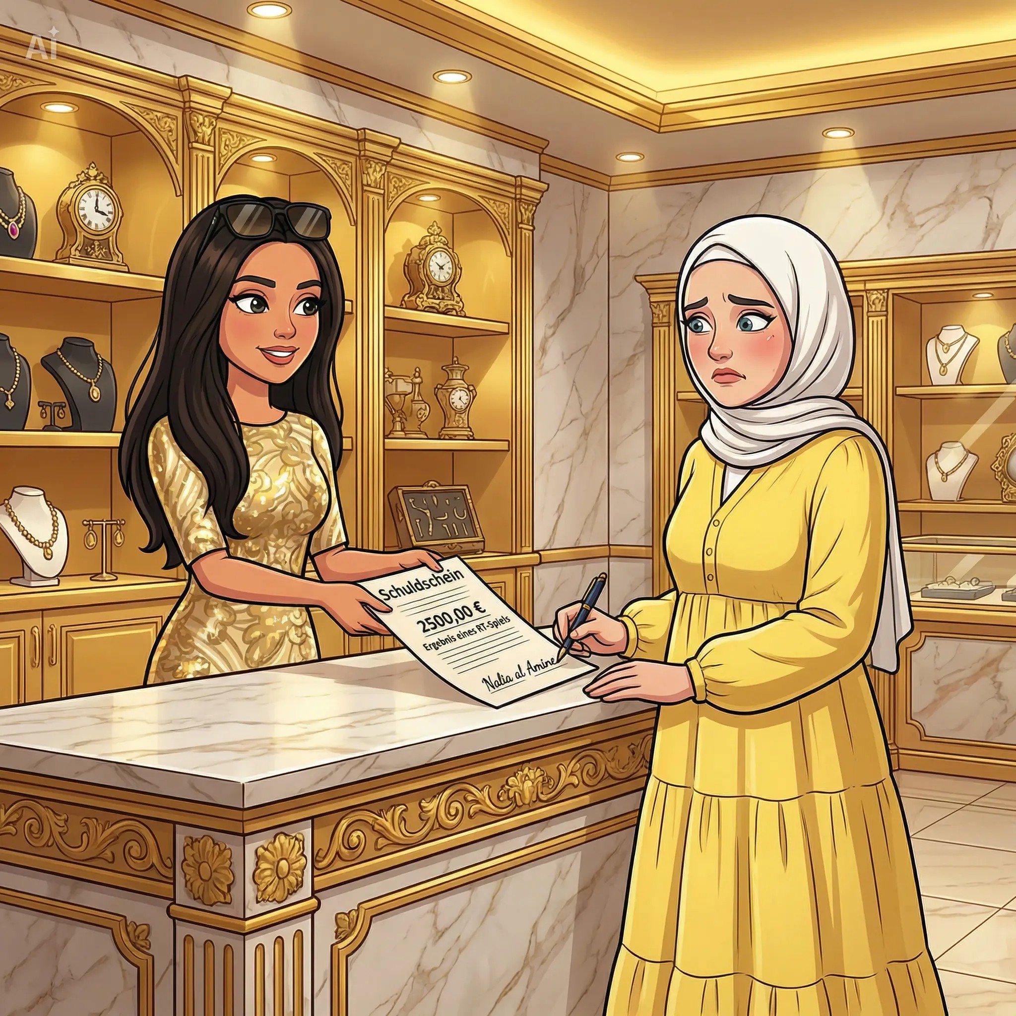Freiwillige Geschenke werden nicht berücksichtigt, aber dennoch aufgezeigt, um zu demonstrieren, was die Herrin von einer Sklavin erwartet.