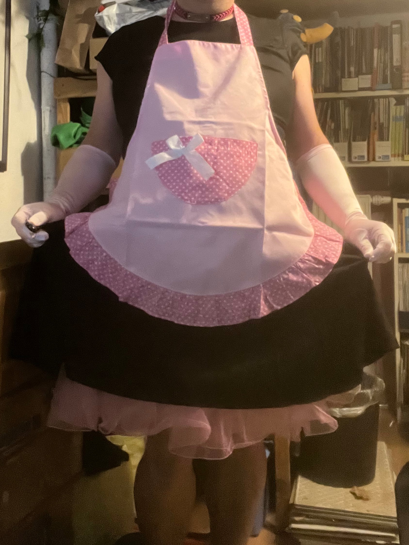 Fanny in verschiedenen Outfits … Satinbluse mit kariertem Rock oder mädchenhaft in einer kurzen Latzhose … oder im rosafarbenen Kleid mit Polka-Dots. so verbringe ich meine Abende mit meiner Herrin …