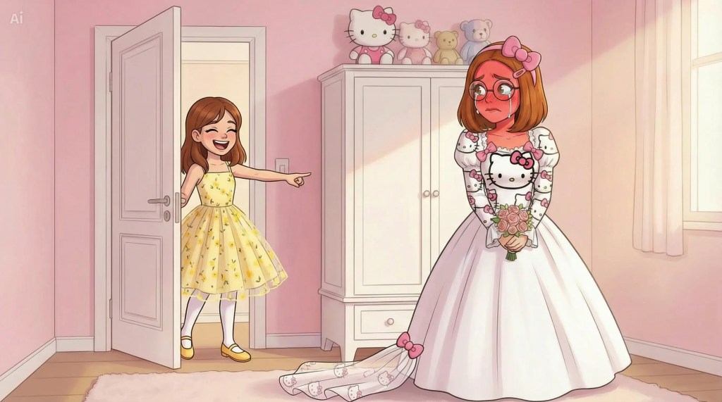 „Ab sofort hören deine Gemeinheiten auf, und werde ich dich zu meiner braven und gehorsamen, kleinen Schwester erziehen, wenn du nicht möchtest, dass ich Mama und Papa diese Bilder von dir zeige“.