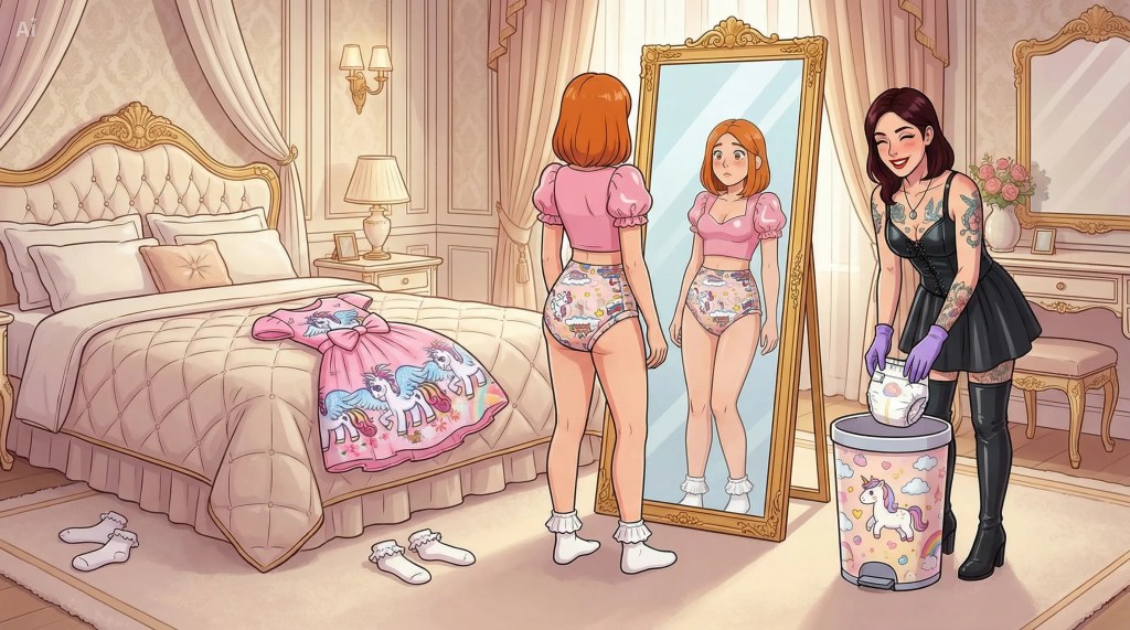 Ich hoffte natürlich, dass sie mich niemals dabei ertappen würde, weil es mir sehr peinlich gewesen wäre … gleichzeitig wünschte ich es mir irgendwie … sie könnte ein Foto machen und mich damit erpressen … dafür sorgen, dass ich nicht nur Mädchensachen, sondern auch Windeln trug und sie würde mich zwingen alles zu tun, was sie von mir verlangen würde.